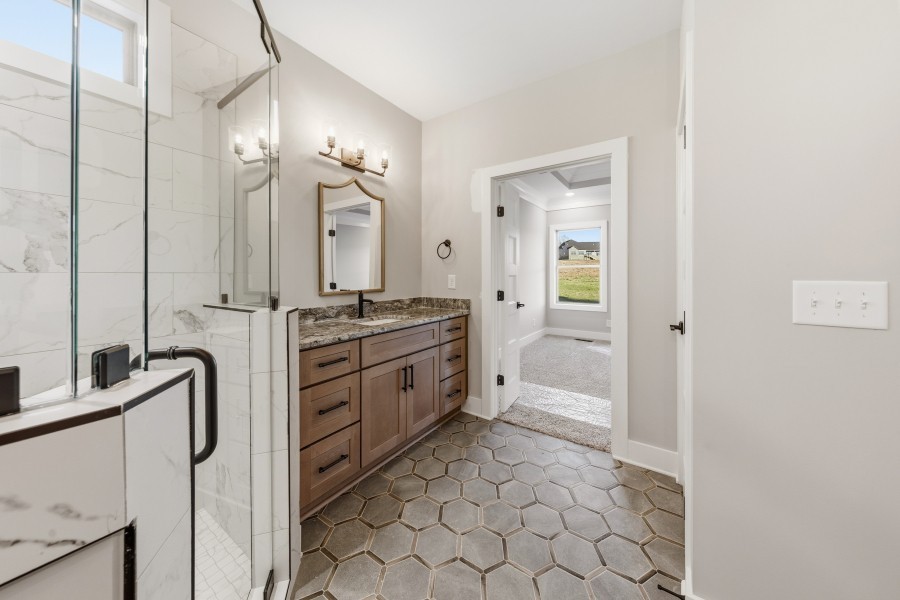 Another beautifully crafted Fleming Home, built with the quality and attention to detail their reputation is known for. The Hayden Hall Plan features an open living area and a kitchen with beautiful cabinetry, stone countertops, stainless steel appliances, and hand-picked fixtures that create a cohesive style throughout the home. Custom trim and millwork, wood closet built-ins, and their interior detailing add character and warmth, while the primary suite stands out with a generous tile walk-in shower and a carefully designed layout for comfort and relaxation. The dining area flows naturally from the kitchen, and the large bonus room on the second floor offers flexible space for a media room, playroom, or home office. With two bedrooms on the main level and two upstairs, the layout provides both comfort and convenience.